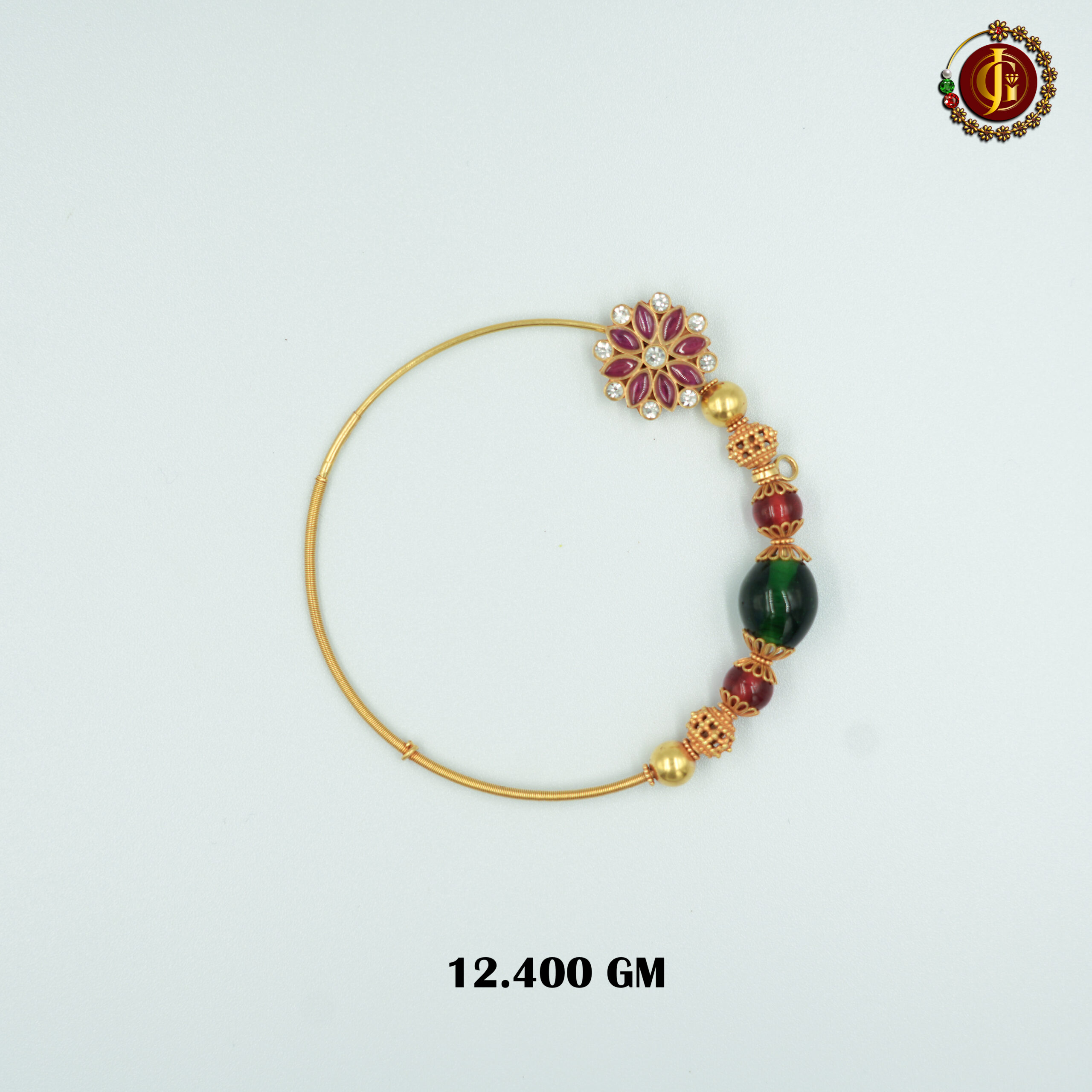 Minimal circular frame accentuated by dual gemstone clusters, offering understated elegance for every celebration.